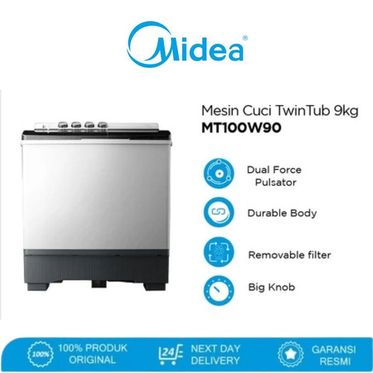 MESIN CUCI 2 TABUNG MIDEA TWIN TUB KAPASITAS 9 KG MT100W90