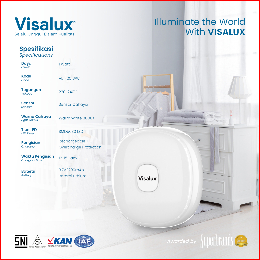 Visalux Lampu Tidur Led 1w Night Light Warm White Auto Sensor Cahaya Kuning Emergency Vlt201ww