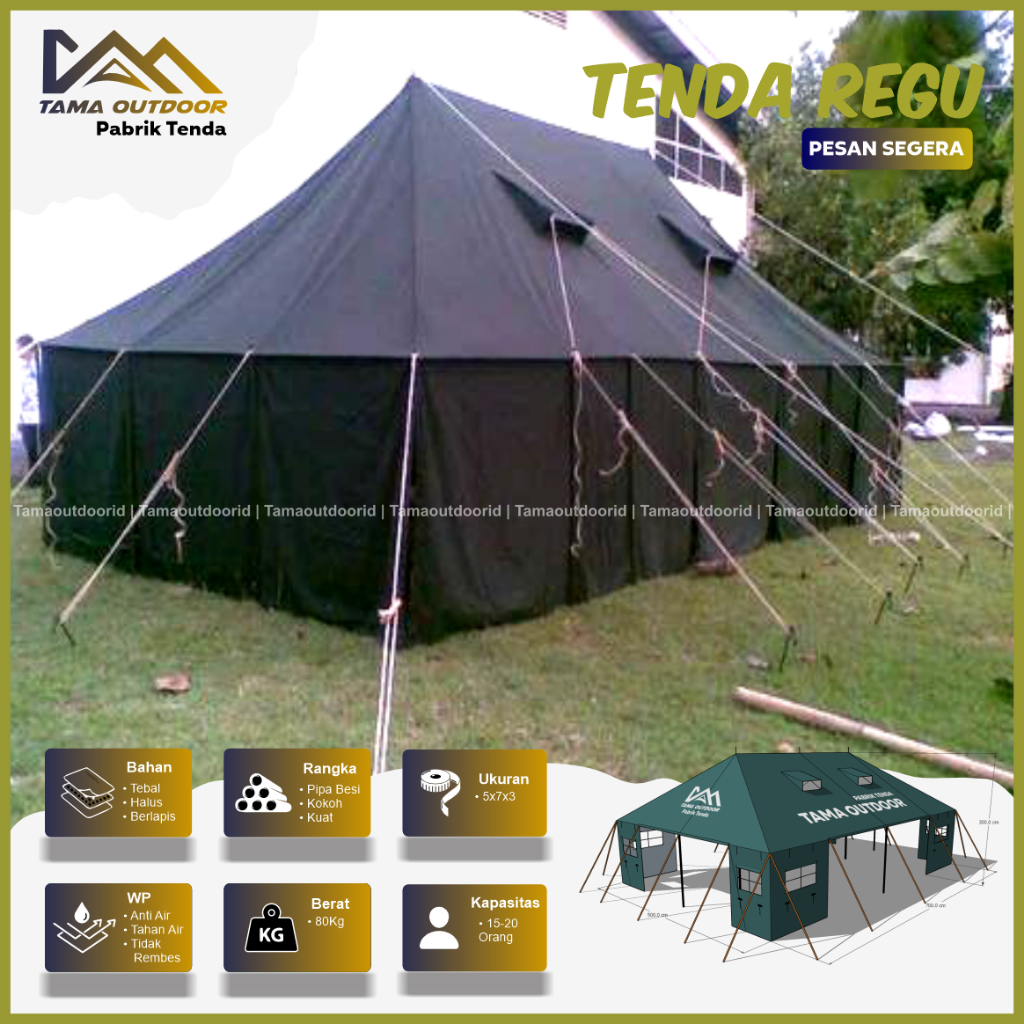 Tenda Komando Regu Peleton - Pleton 4x6 1set | Tni Militer Pramuka Barak Army