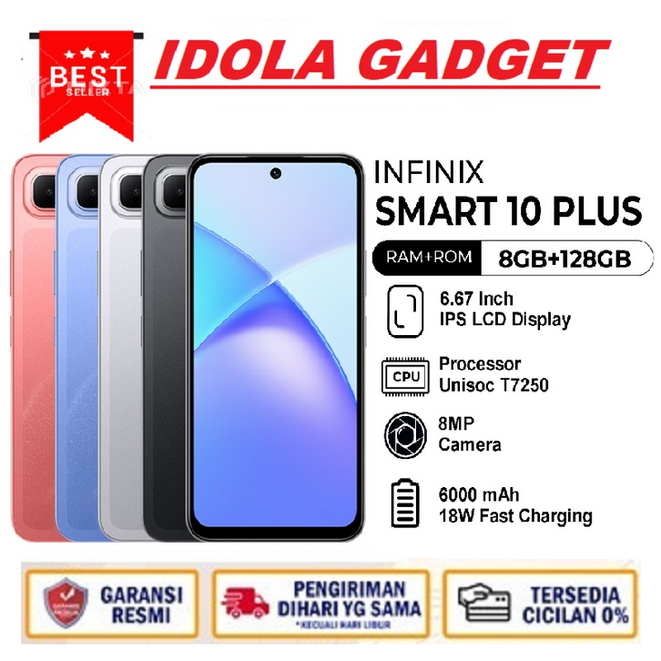 (GRATIS ONGKIR) Hp INFINIX SMART 10 PLUS NFC 8+128GB | Unisoc T7250 | Camera 8MP | Batery 6000mAh
