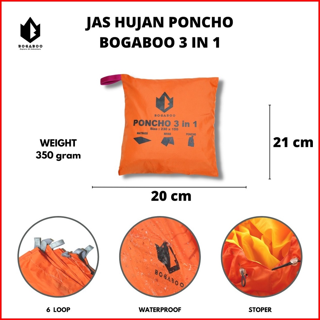 Jas Hujan Ponco Bogaboo Waterproff - Raincoat Mantel -mantol - Jas Hujan Motor
