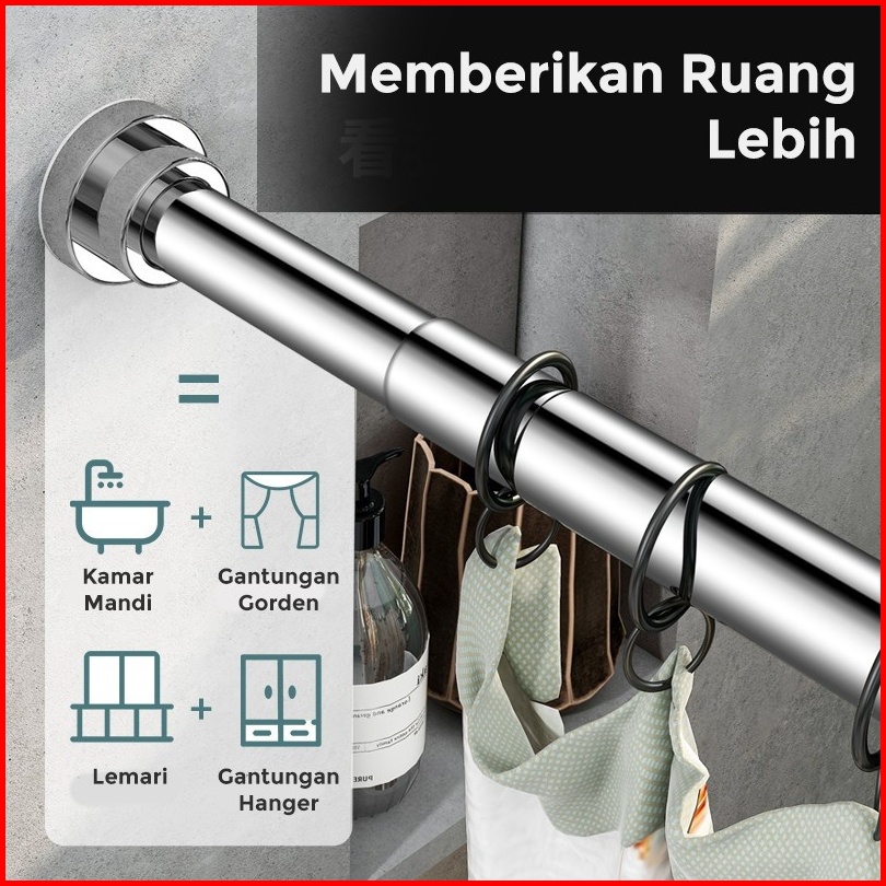 Nanjiren Tiang Gantungan Serbaguna Untuk Gorden Hordeng Korden Batang Tirai Tiang Baju 40cm - 260cm