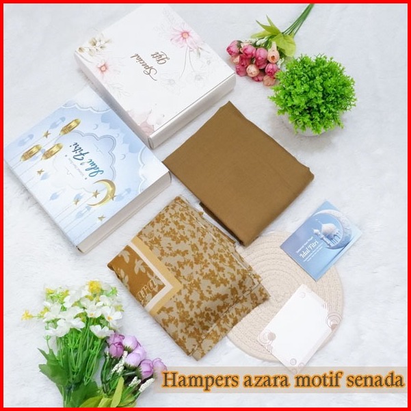 Hampers Dua Hijab Segiempat Motif Azara Dan Polos Katun Senada Kado Ultah Dan Lainya