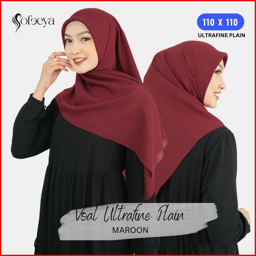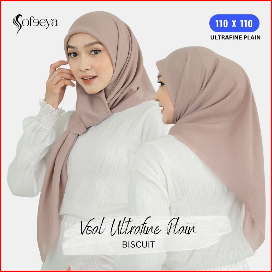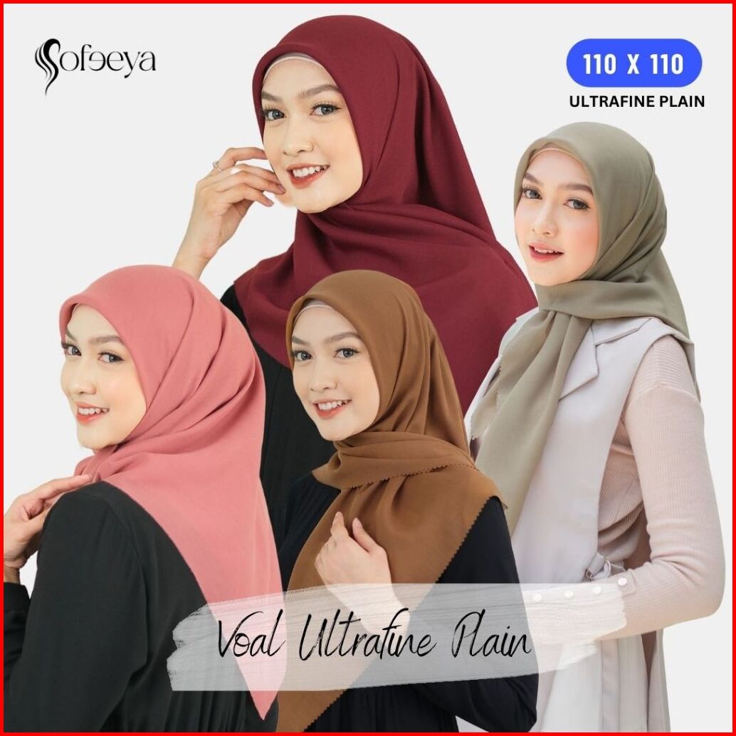 Sofeeya - Kerudung Polos Hijab Voal Ultrafine Segi Empat Jilbab 110 X 110 Cm Pinggiran Lasercut