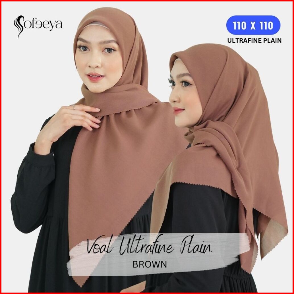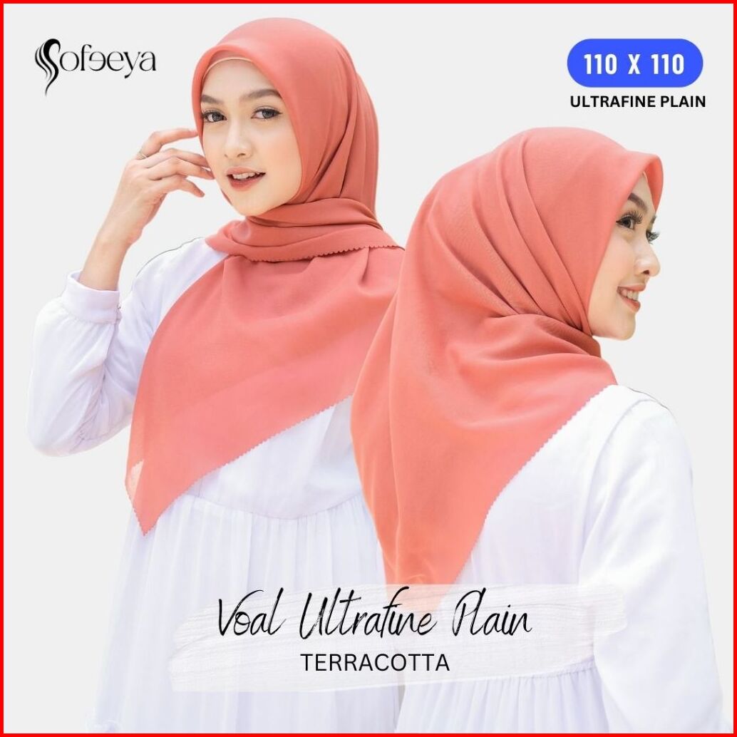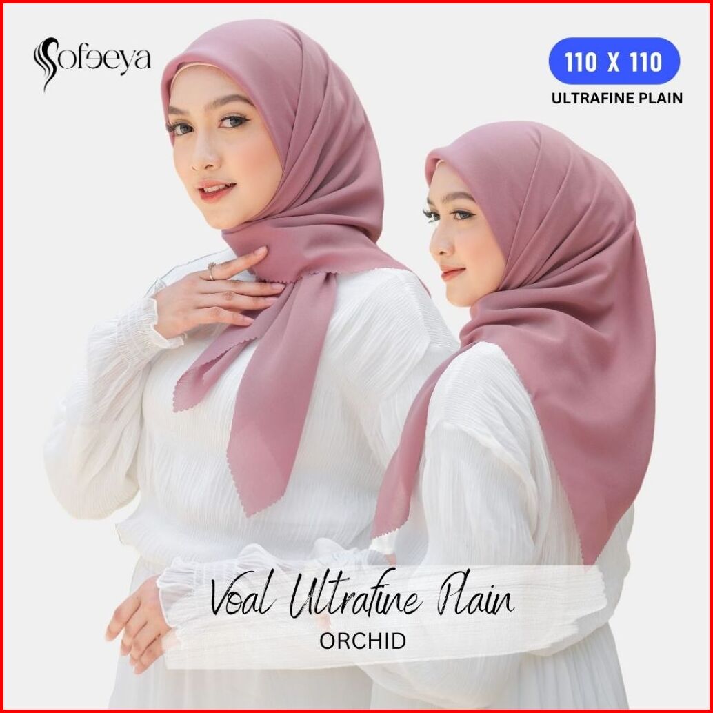 Sofeeya - Kerudung Polos Hijab Voal Ultrafine Segi Empat Jilbab 110 X 110 Cm Pinggiran Lasercut