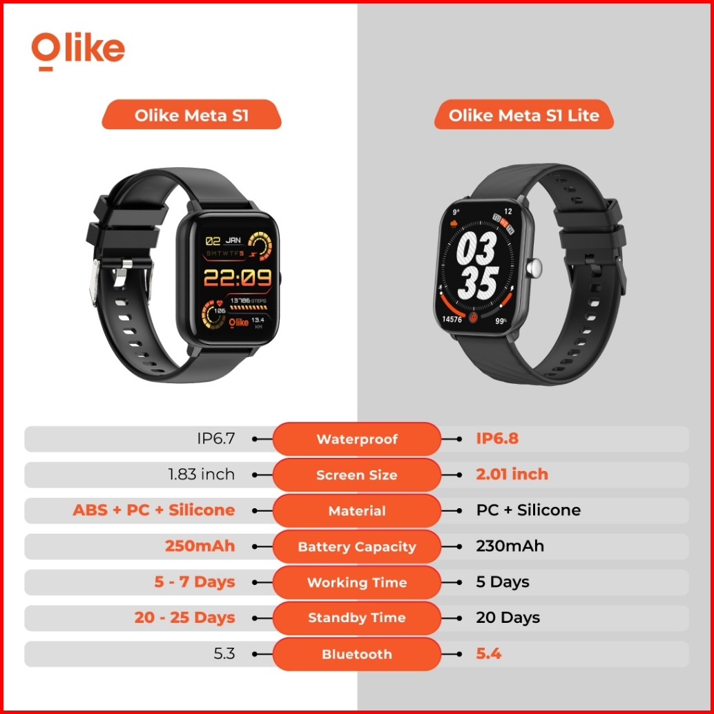 New Product Olike Smartwatch Meta S1 Lite Hd Battery Up To 20 Day Screen Custom Face Waterproof Ip68 Smart Watch Bluetoo