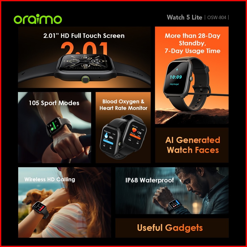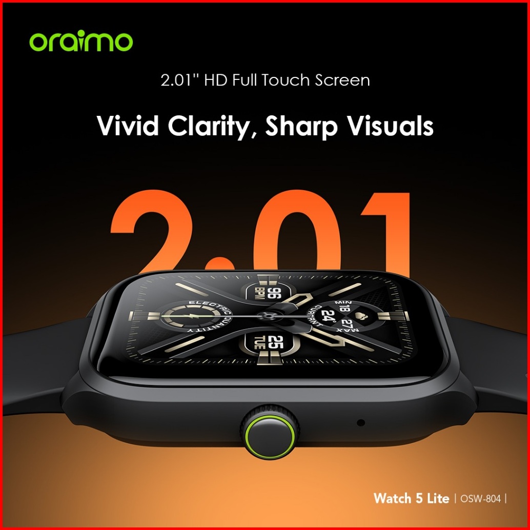 New Launching Oraimo Watch 5 Lite Smartwatch Osw-804 Jam Tangan Pintar Layar Besar 2.01 Bluetooth Baterai Tahan Lama Tah