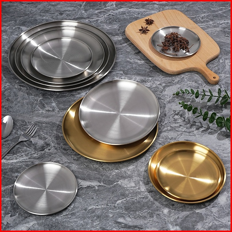 Bakindo Piring Makan Sultan Piring Bulat Stainless Steel Piring Korea Aesthetic Dekorasi Stainless Steel European