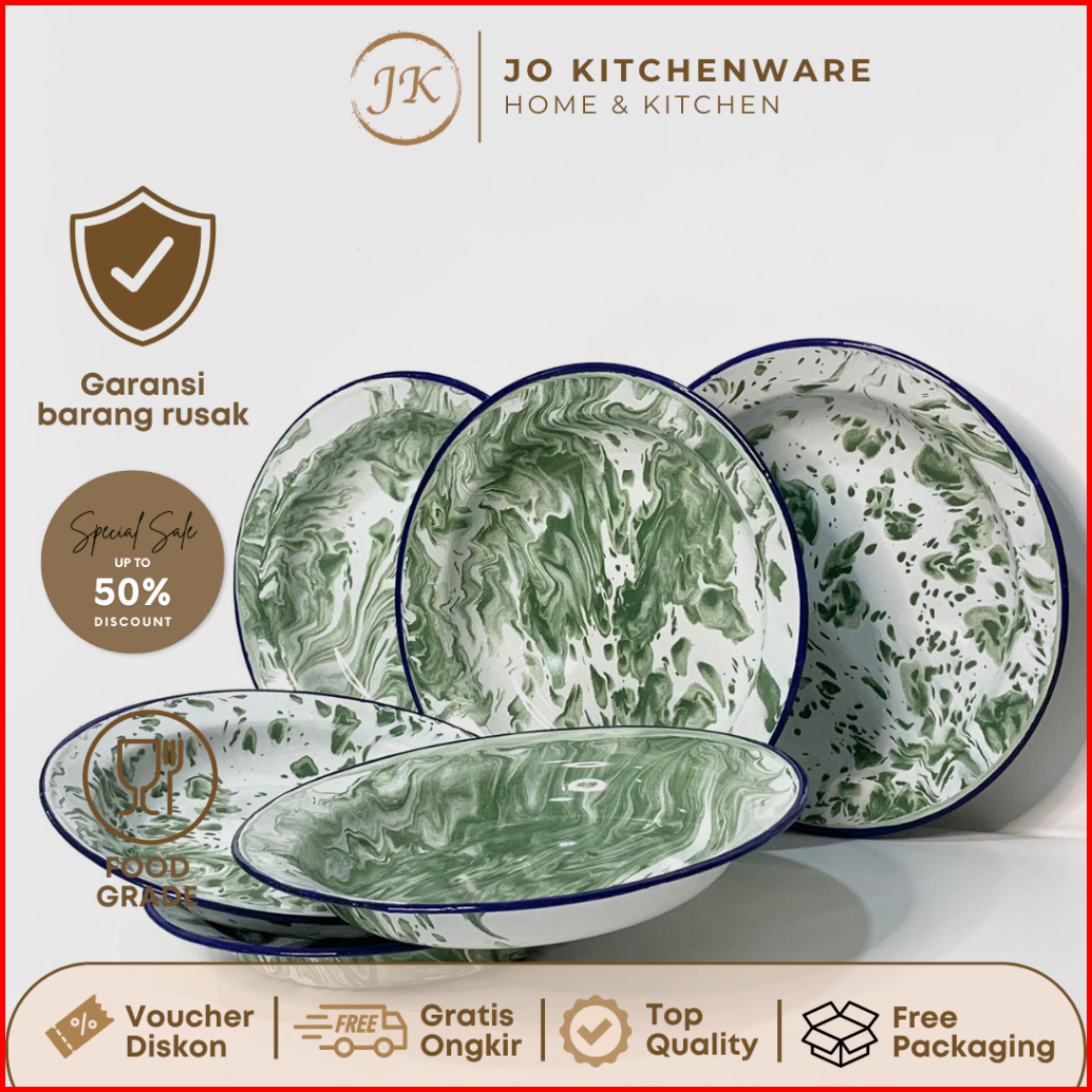 Piring Enamel Jadul Blirik Dimeter 20-22cm Piring Enamel Serbaguna