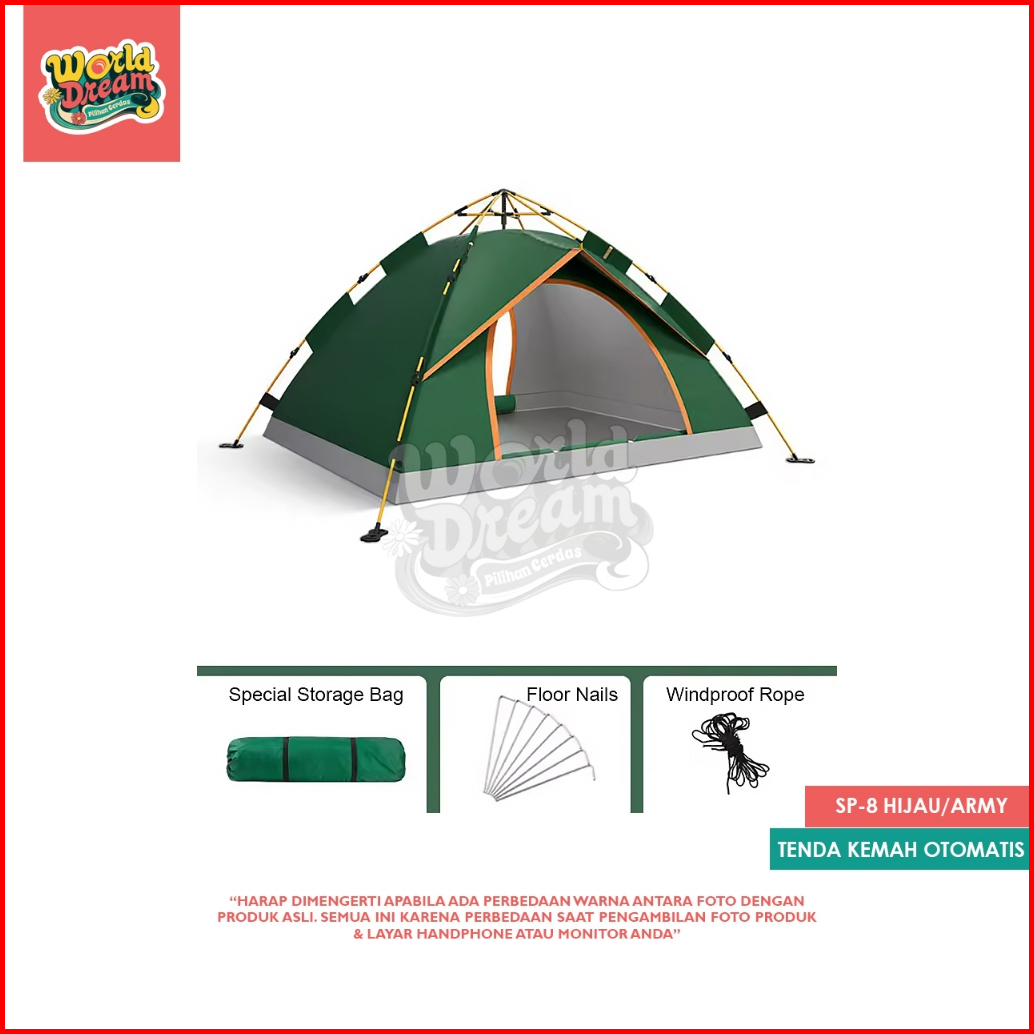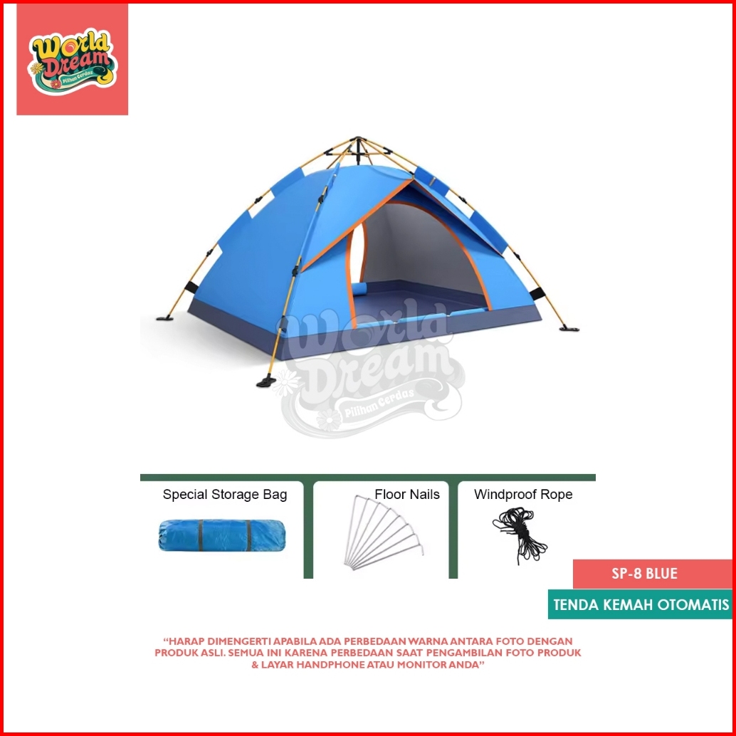 Worldream Tenda Kemping Kapasitas 2-4 Orang Tenda Otomatis Outdoor Indoor Tenda Gunung