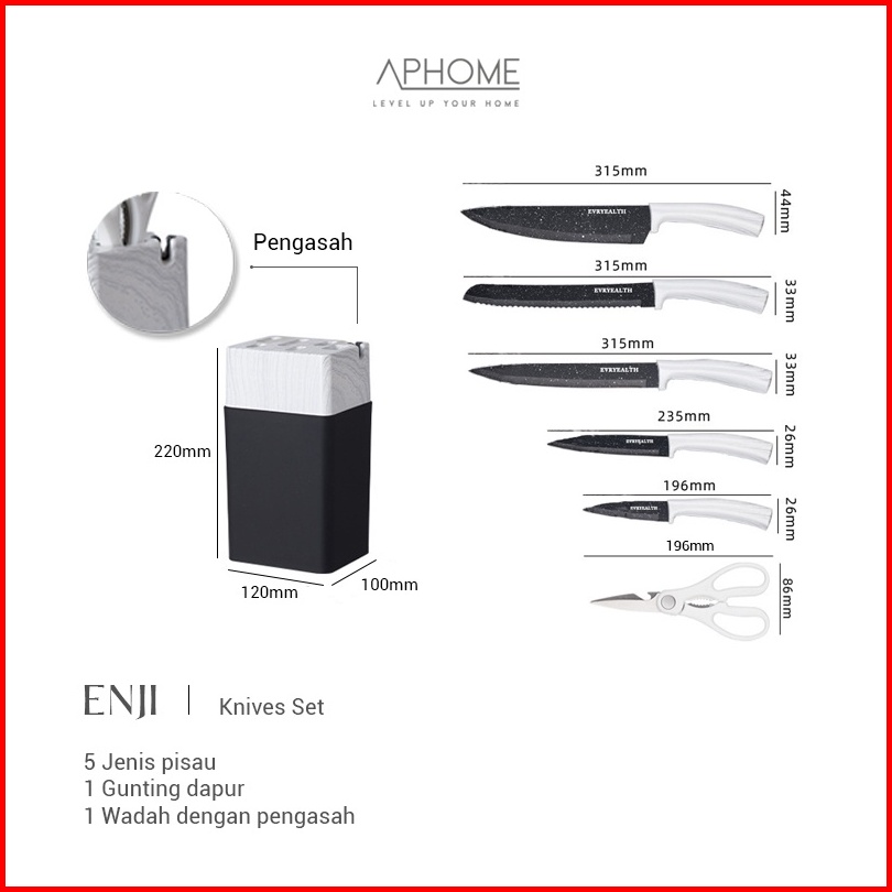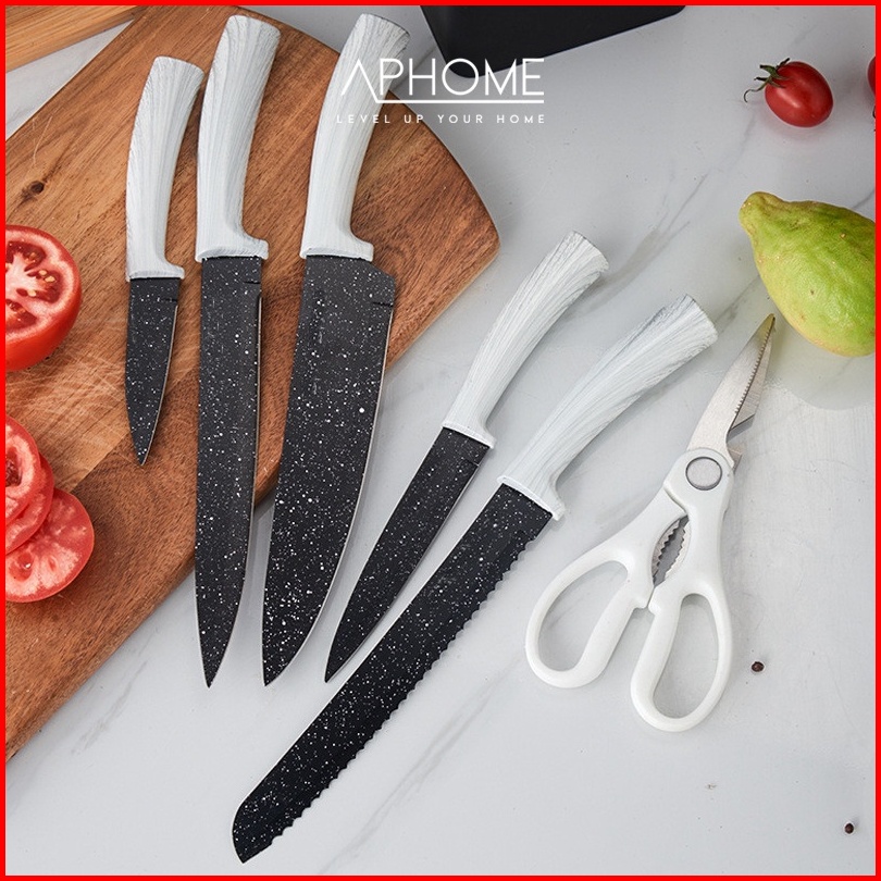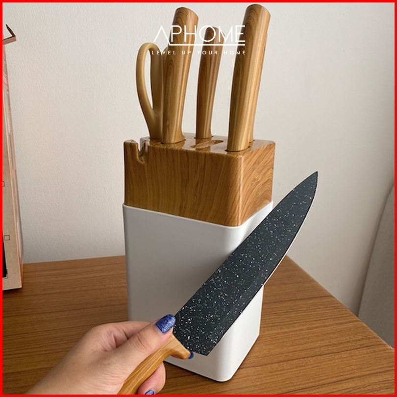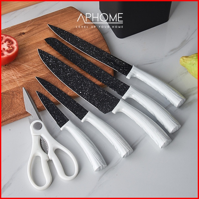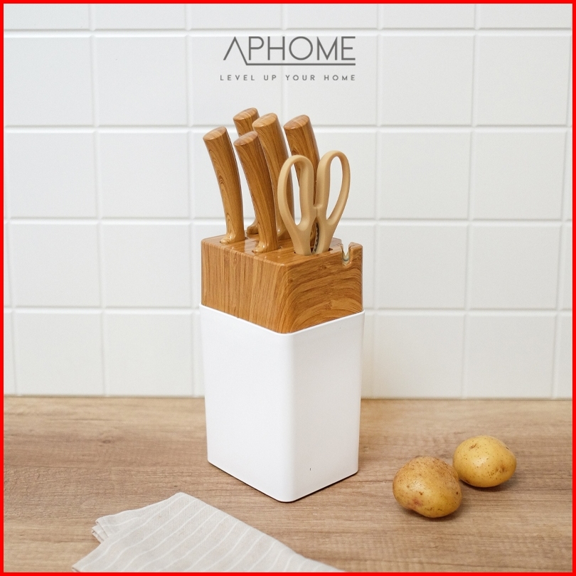 Aphome Pisau Dapur Set 7in1 Knife Set Kitchen Knife Set Gunting Dapur Dengan Rak Holder Pisau Enji