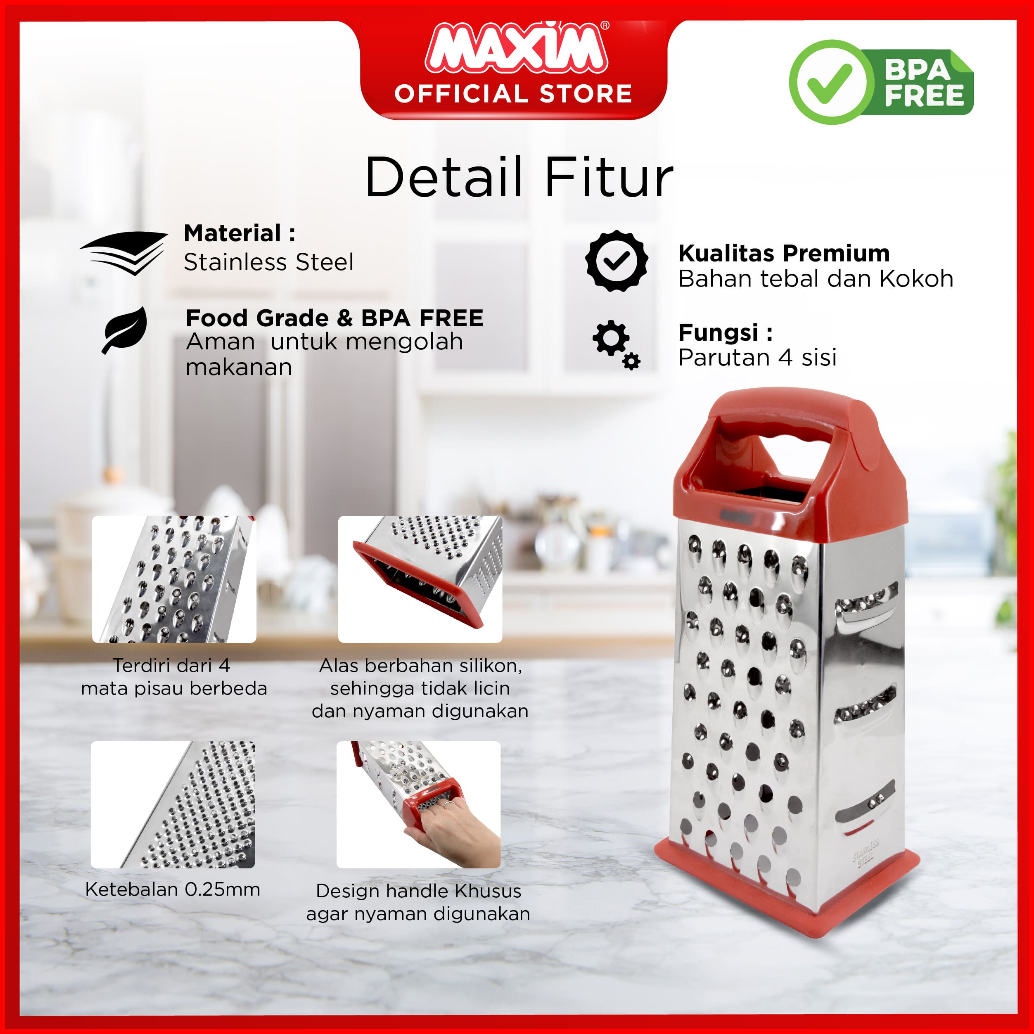 Maxim Tools 4 Side Box Grater - Parutan Stainless Steel 4 Sisi