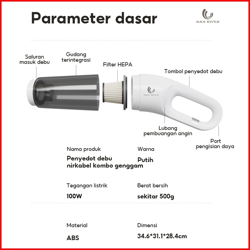 Han River Vacuum Cleaner 5 In 1 Multifungsi Penyedot Debu Strong Suction Handheld Penyedot Debu