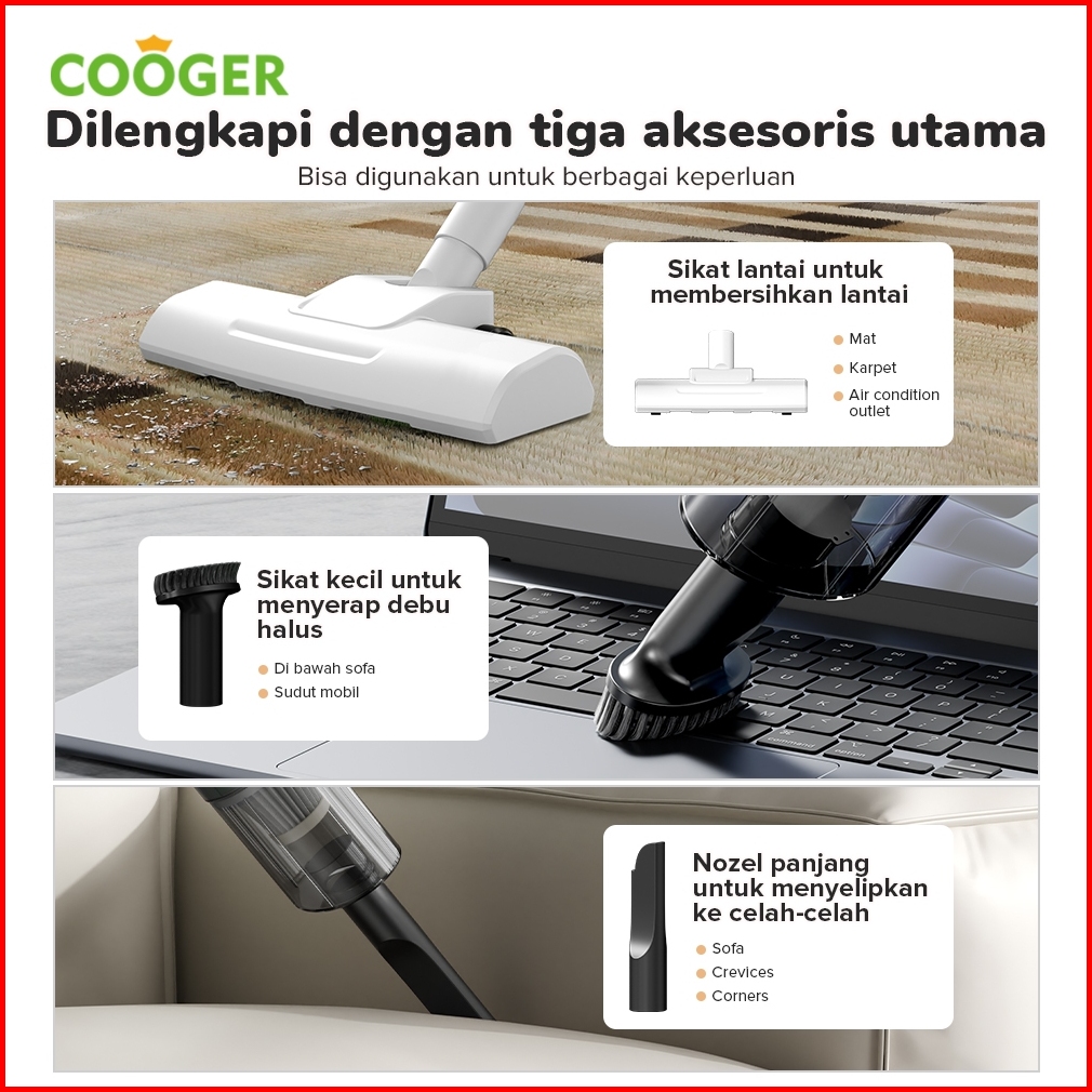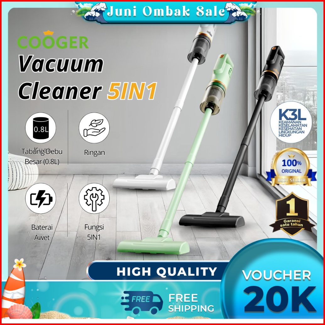 Cooger Vacum Cleaner 5in1 Vacuum Lantai Penyedot Debu 5in1 Dengan Gagang Panjang Hijau Alat Penyedot Debu Serbaguna Peny