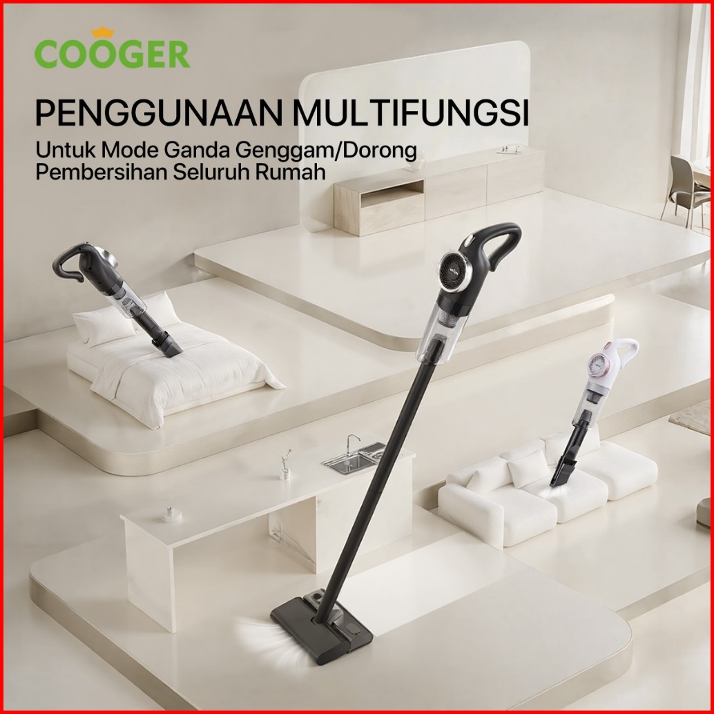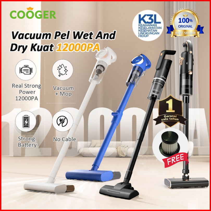 Cooger Vakum Cleaner Wet And Dry Vacuum Pel Lantai Pembersih Kasur Sofa Kuat 12000pa Tanpa Kabel