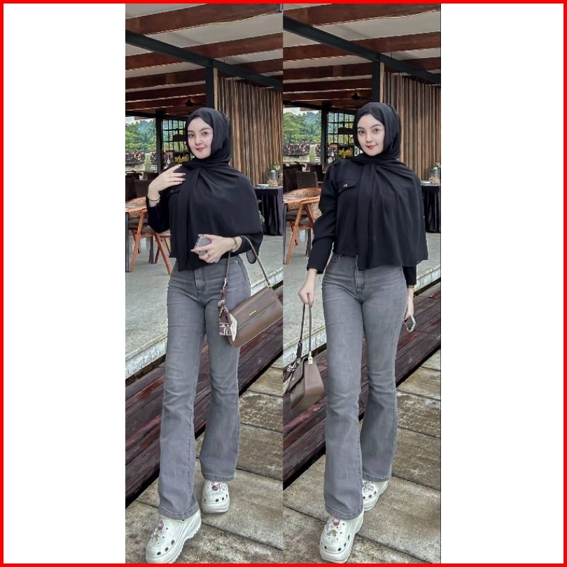 Highwaist Cutbray Jeans Loose Anti Ngantung Melar Tebal - Celana Jeans Cutbray Wanita Kekinian