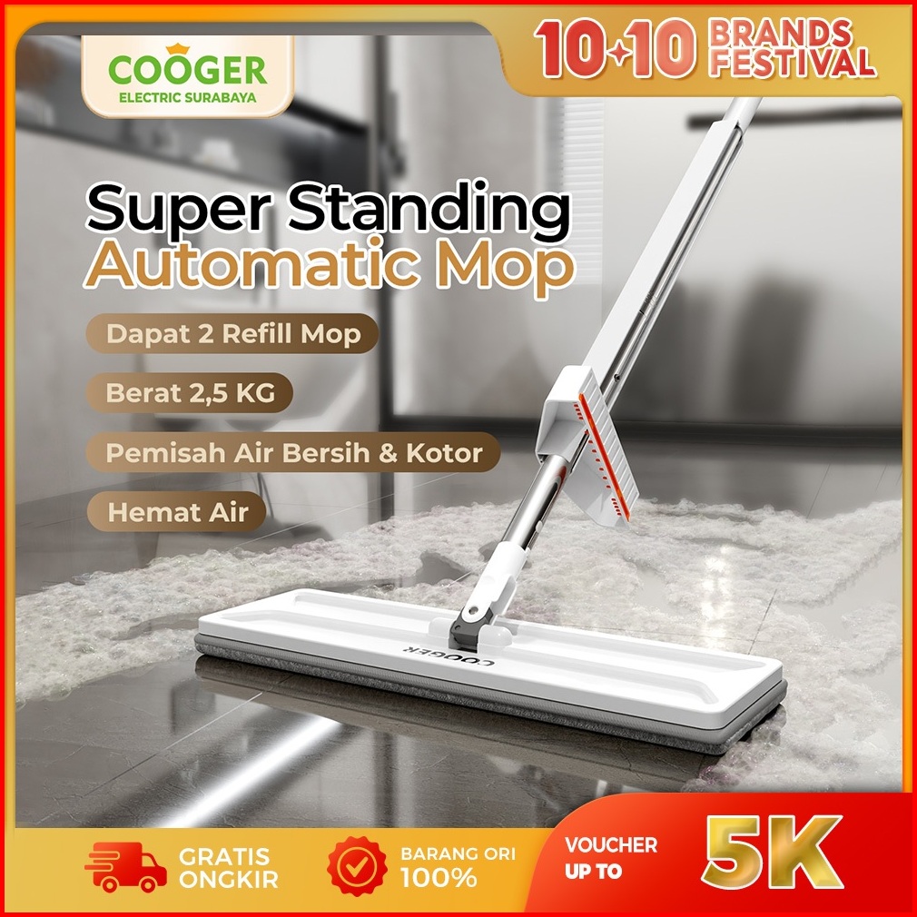 Special Cooger Alat Pel Otomatis Super Praktis Standing Mop Pel Lantai Bisa Berdiri Dilengkapi Kain Microfiber Ultra Whi