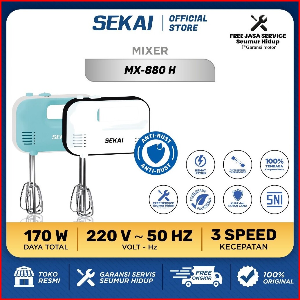 Sekai Hand Mixer Alat Pengaduk Adonan Portable Elektrik Mx 680