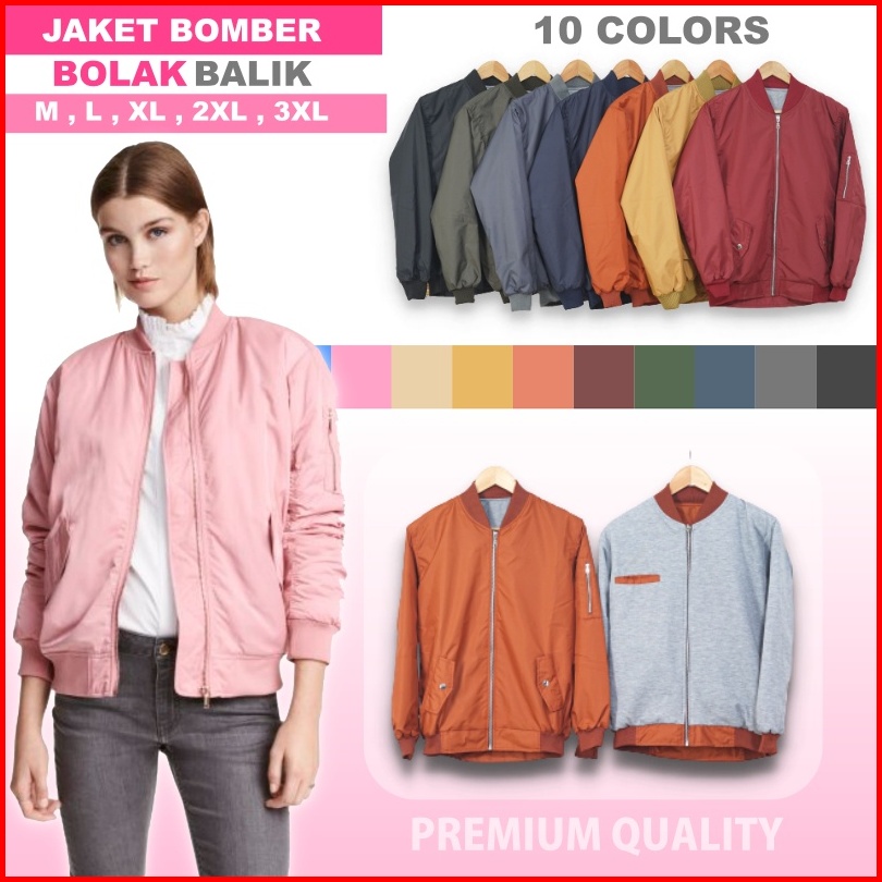 Jaket Bomber Wanita Premium Jaket Bolak Balik Jaket Waterproof