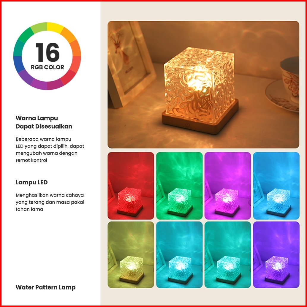 Lampu Tidur Water Lamp Aesthetic Acrylic Crystal Aurora 16 Warna Usb Port Lampu Tidur Romantis Lampu Hias Minimalis Lamp