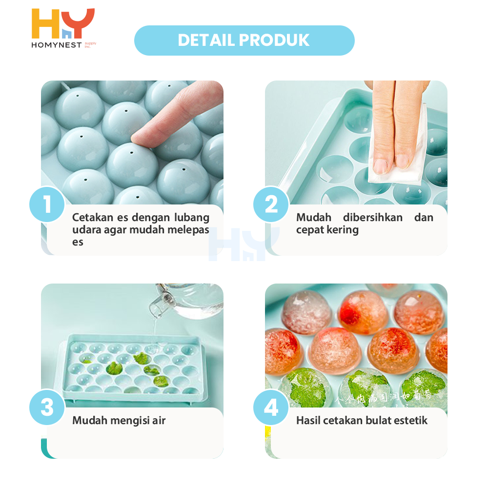 Homynest Ice Ball Maker Cetakan Es Batu Dan Jelly Bulat Isi 33 Serbaguna