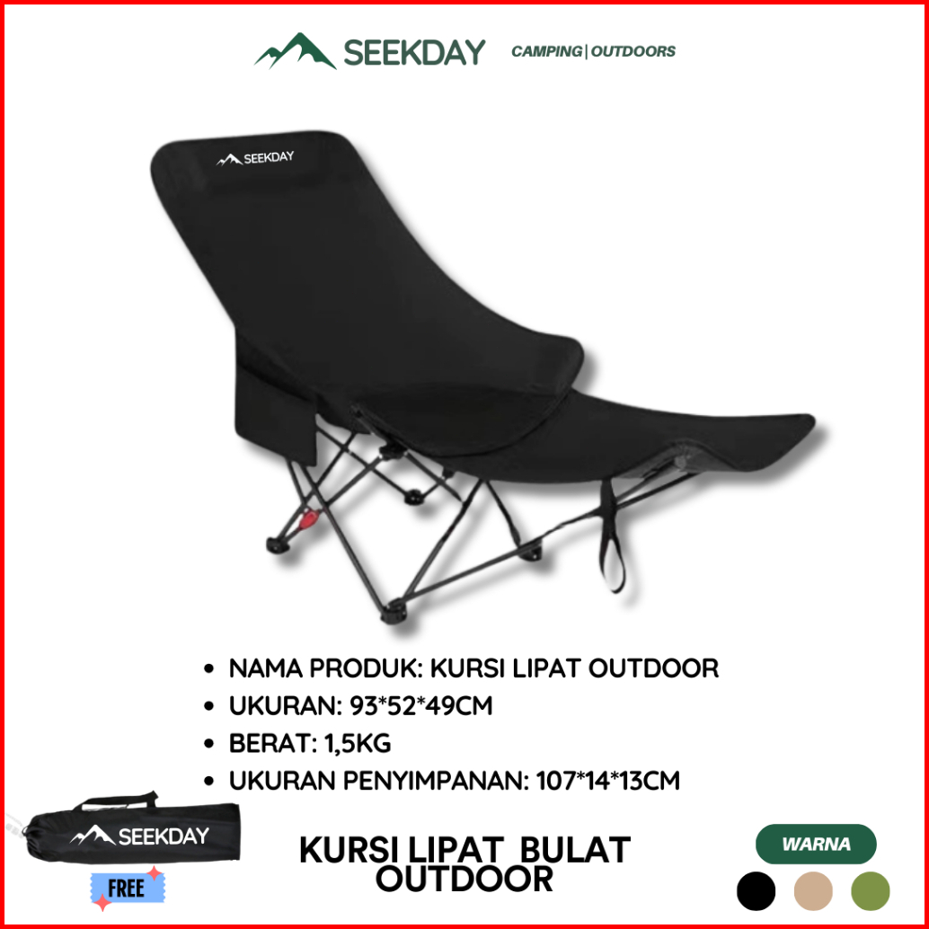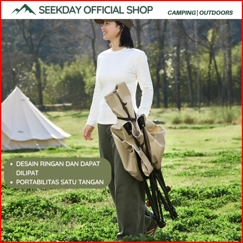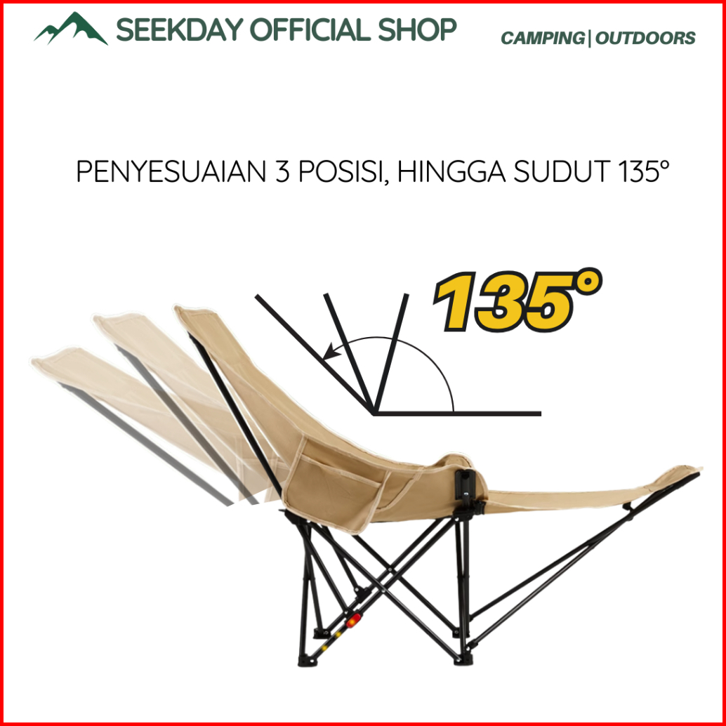 Seekday Kursi Lipat Sandaran Tinggi Dengan Sandaran Kepala Busa Penyesuaian 135 Kursi Lipat Outdoor Beban 180kg Camping