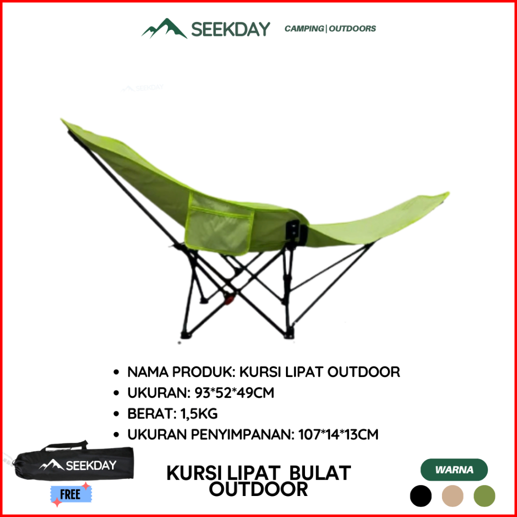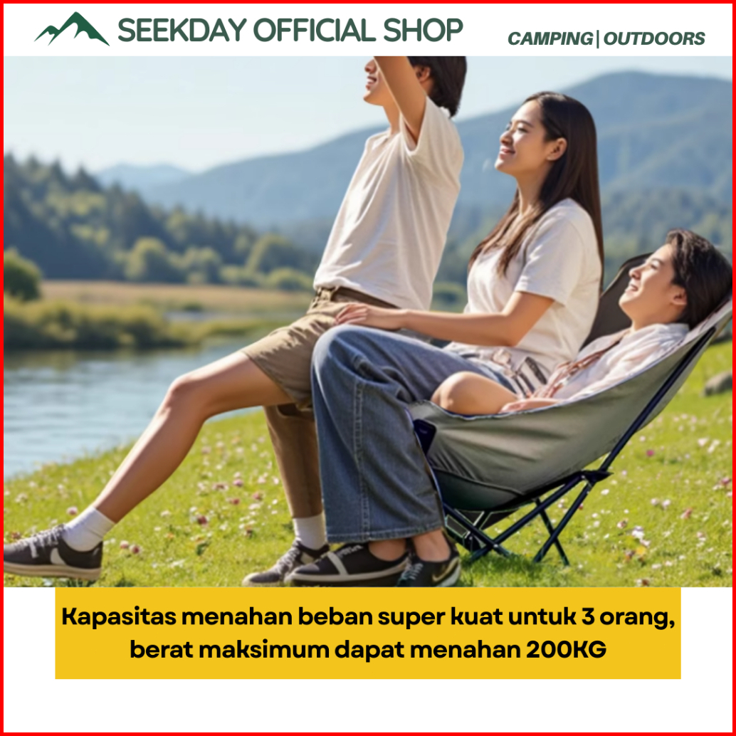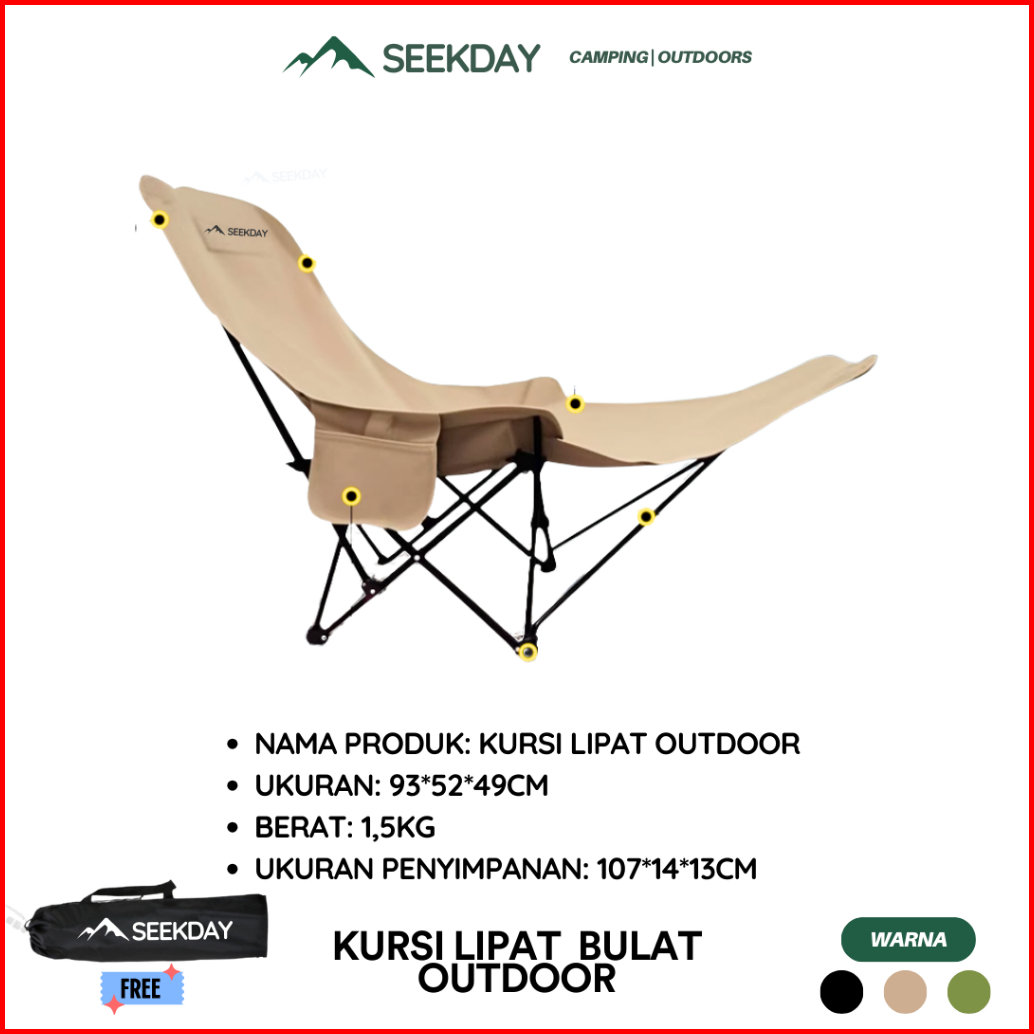 Seekday Kursi Lipat Sandaran Tinggi Dengan Sandaran Kepala Busa Penyesuaian 135 Kursi Lipat Outdoor Beban 180kg Camping