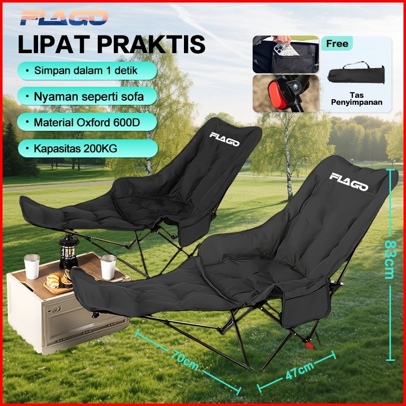 Flago Kursi Lipat Outdoor Sandaran Kaki Kursi Pantai Lipat Portable Kursi Santai Kursi Berkemah