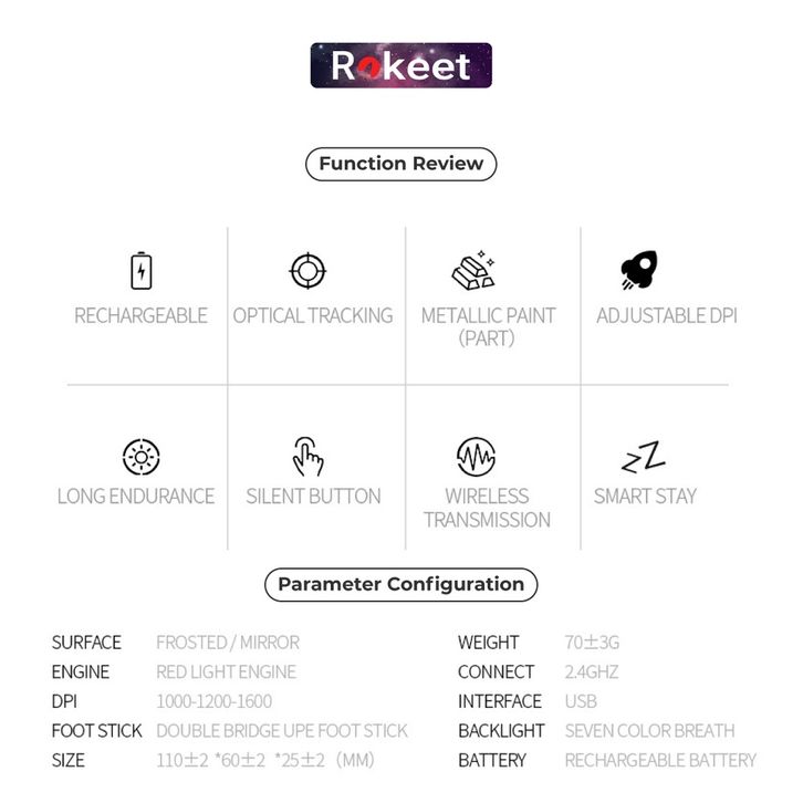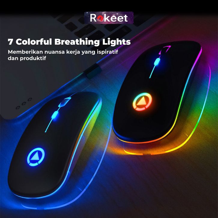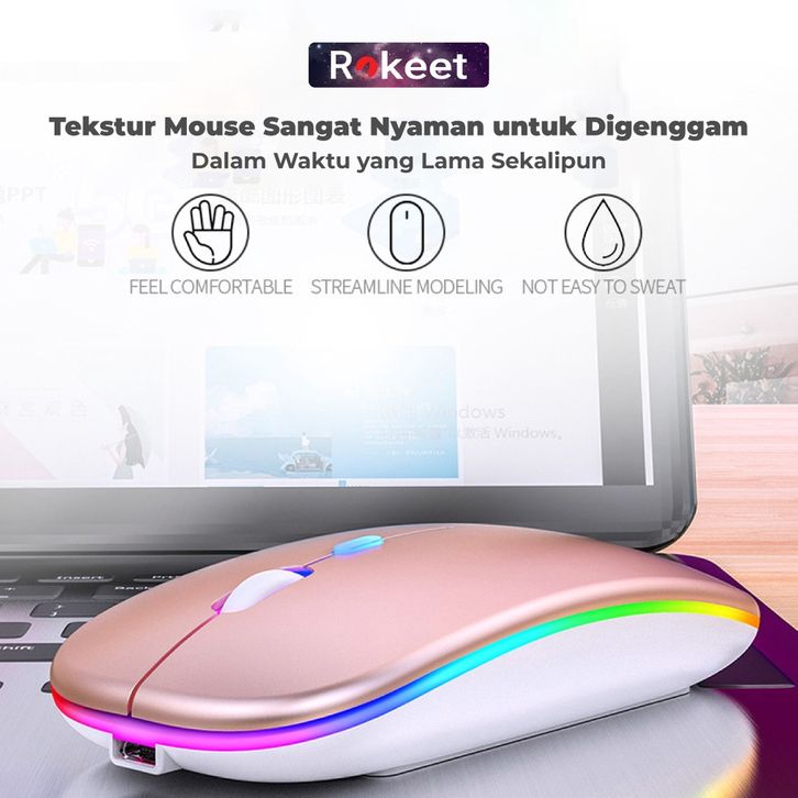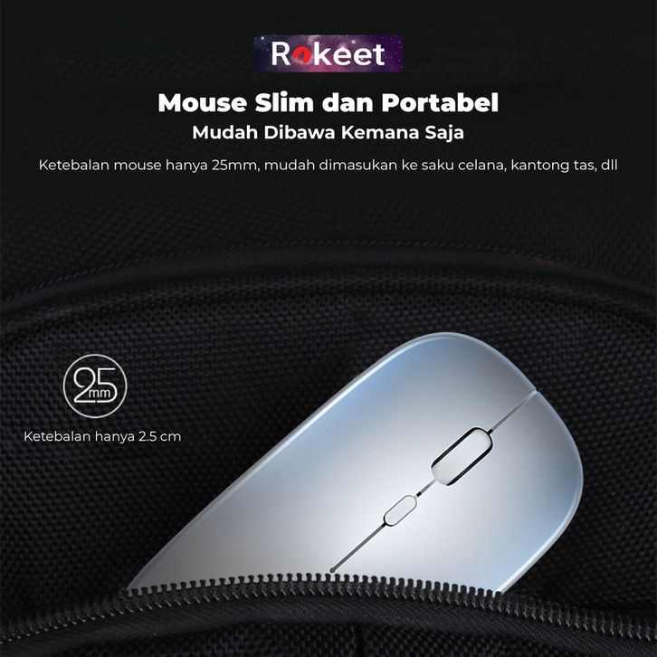 ORI Rokeet Mouse Wireless Silent Click Slim 2.4Ghz 1000/1200/1600DPI Rechargeable untuk PC Laptop Gaming Macbook Ultra