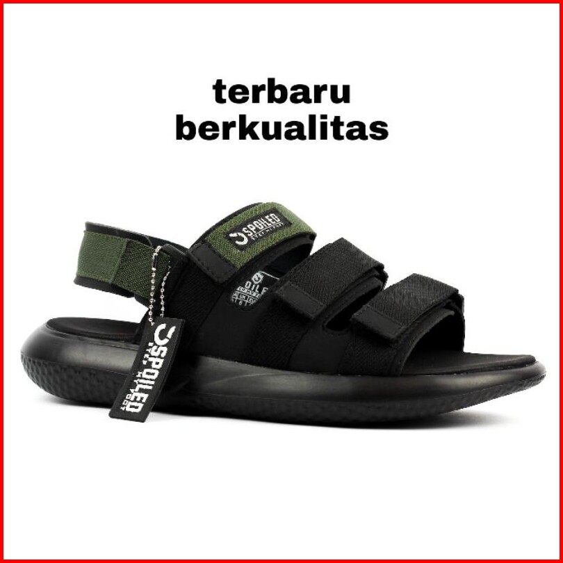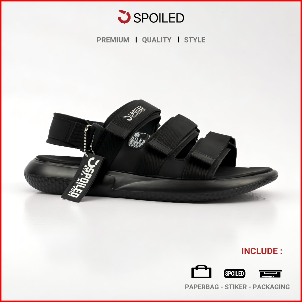 Spoiled Sandal Gunung Pria Kilimanjaro 02 Casual Tali Adjustable Warna Hitam Putih Bahan Kulit Sintetis Webbing Anti Sli