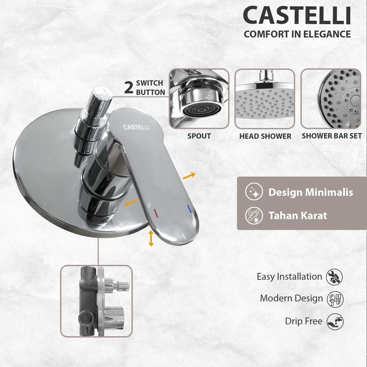 Keran Dinding Castelli Kran Tembok Concealed Shower Mixer 2 Function - 1476594-WC