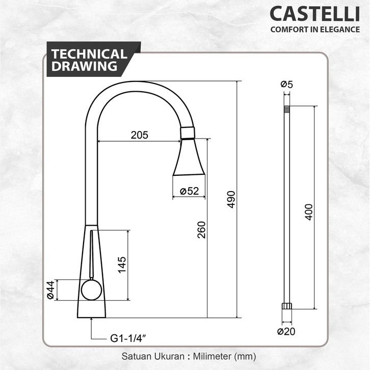 Keran Dapur Castelli Kran Angsa Flexible Single Handle Sink Tap - 1176539