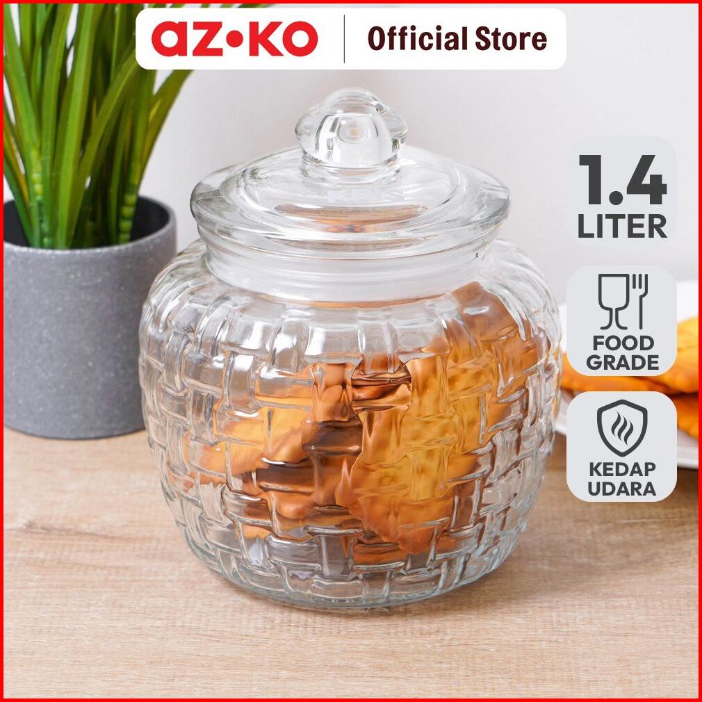 Azko Picas 1.4 Ltr Stoples Transparan Jar Tempat Simpan Snack Dan Permen Setoples Toples Serbaguna Perlengkapan Dapur