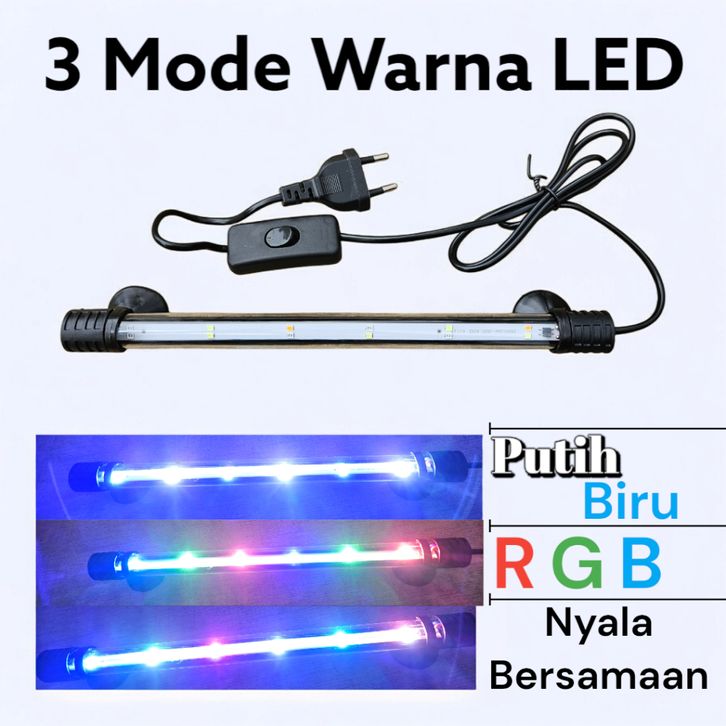 Lampu Led Celup Aquarium 2 Baris LED Ganti Warna 3 Mode Lampu Celup Aquarium Kolam Ukuran 20-50cm DBL PB