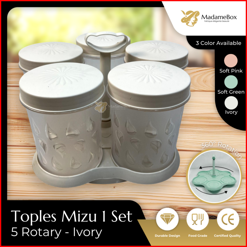 Clio Plastics Toples Nampan Makanan Kue Snack Permen Transparan Putar Lebaran Natal Imlek 1 Liter Mizu 5 Rotary Set Ivor