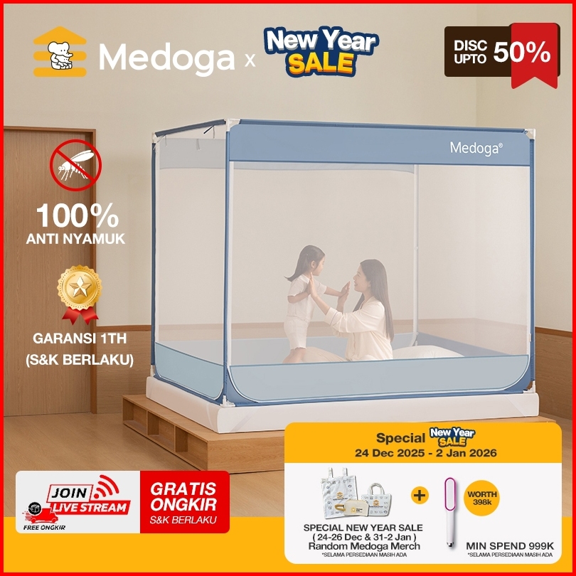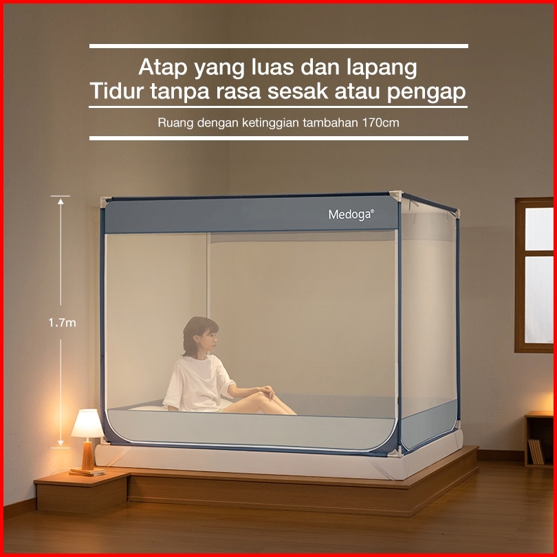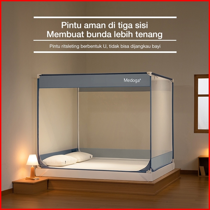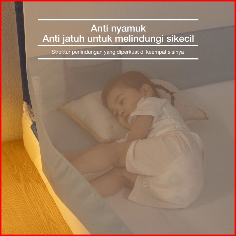 Medoga Kelambu Tidur Polos Kotak Anti Jatuh Anti Nyamuk Bayi Anak Dewasa Bedrail Aman
