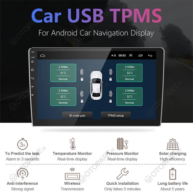 TPMS USB External Tire Pressure Monitoring System for HeadUnit Android - EXTERNAL