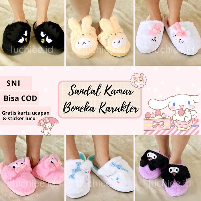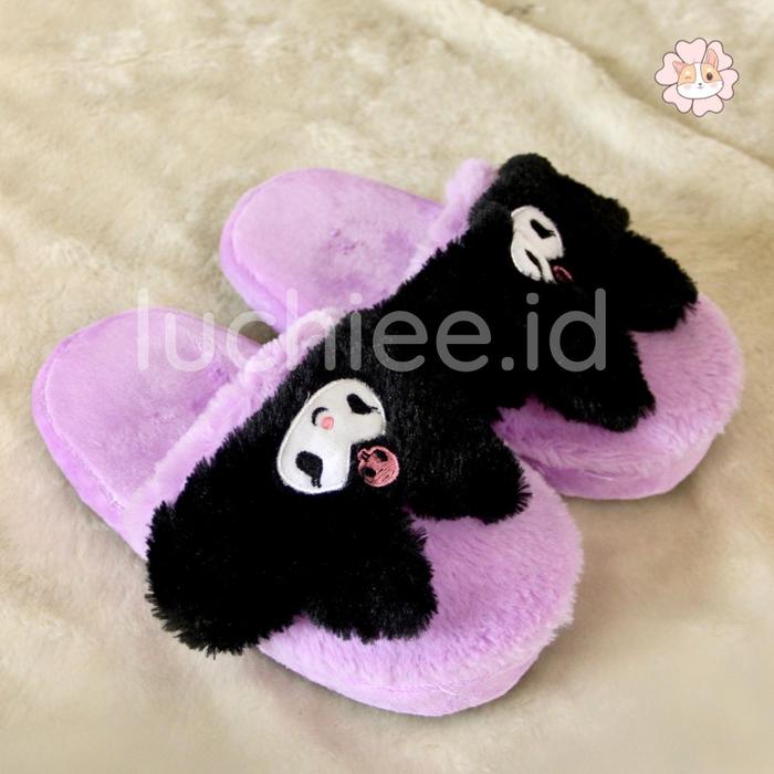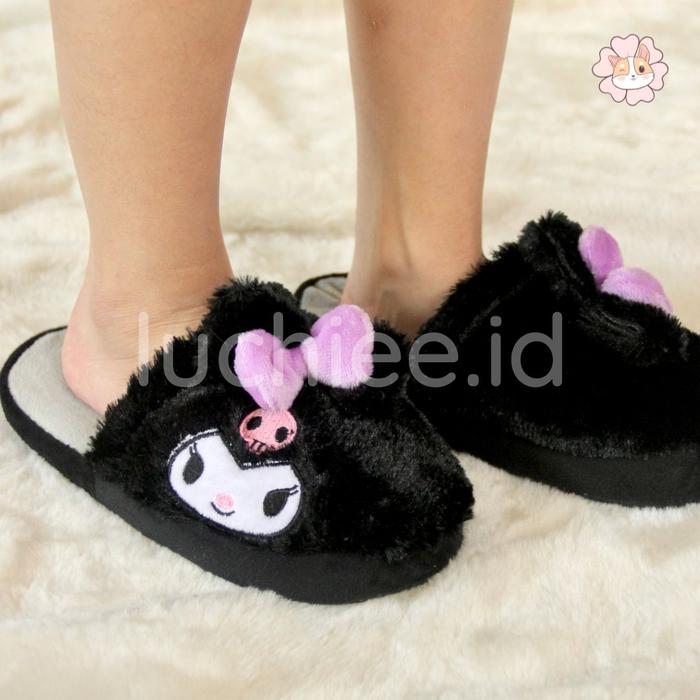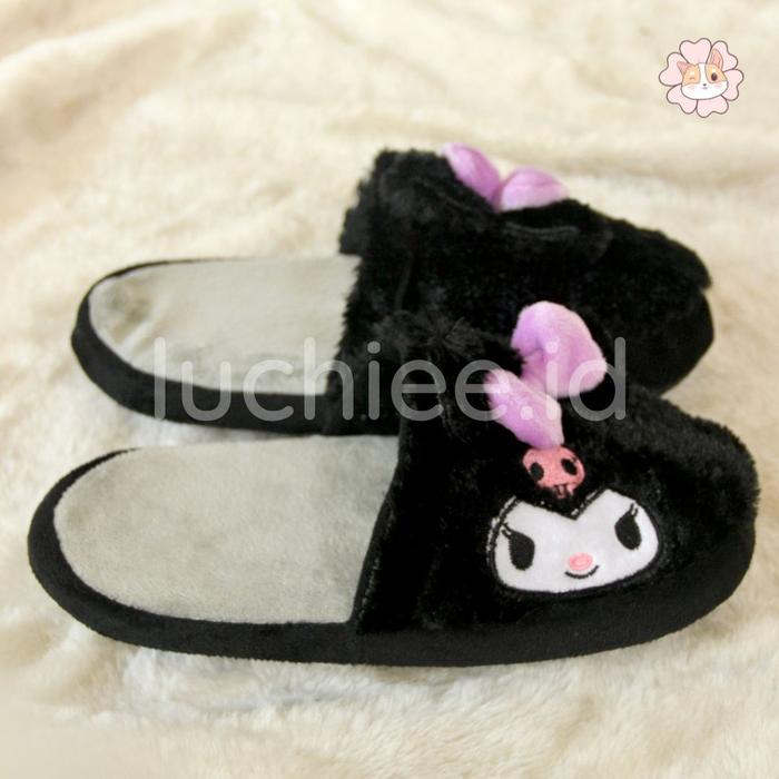Sandal Rumah Tidur Boneka Karakter Anak Perempuan Dewasa SNI Anti Slip - Kuromi Hitam