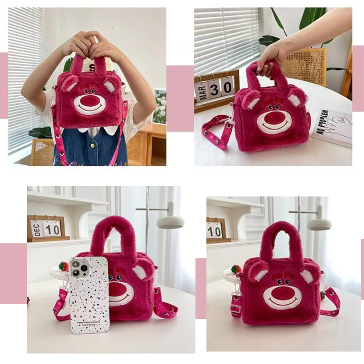Tas Selempang Anak Perempuan Bahan Bulu Halus Shoulder Bag Motif Karakter Lucu