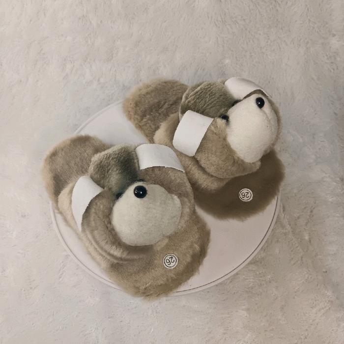 Sandal anak bulu boneka import/Sandal anak premi Fashion Kaki - Hitam, 26