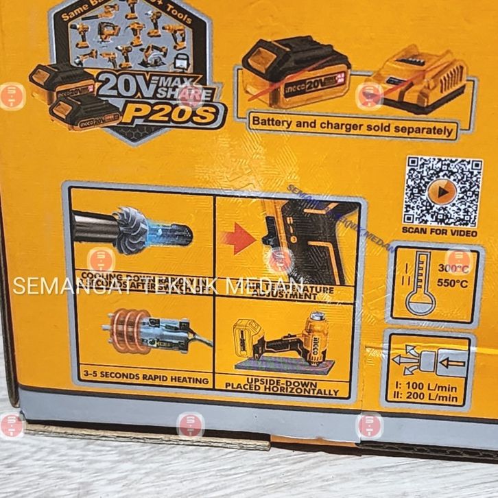HGLI2002 Cordless Heat Hot Air Gun Pemanas Baterai 20V P20S Unit INGCO DISKON