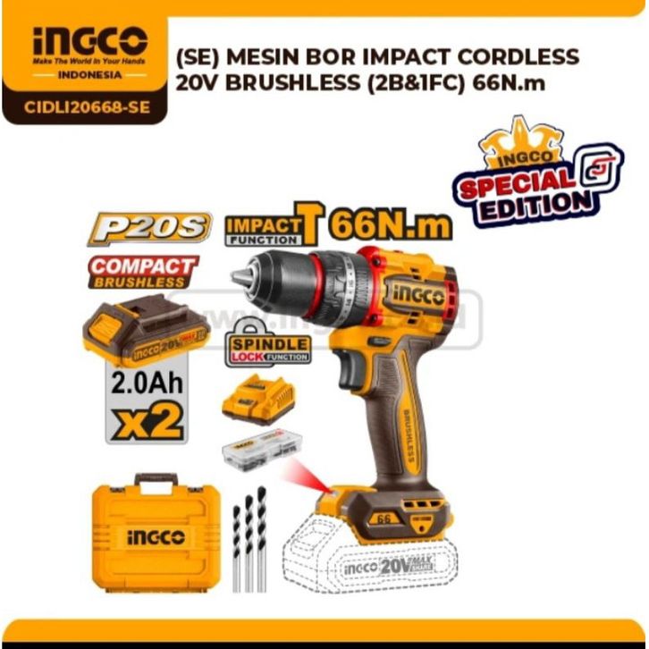 MESIN BOR 13mm IMPACT CORDLESS 20V BRUSHLESS 2B&1FC 66N.m PROMO
