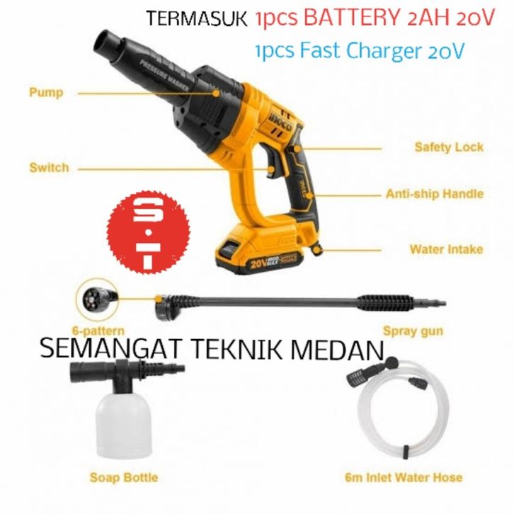 CPWLI20082 Mesin Cordless Cuci Mobil Jet Cleaner 2Ah 25 Bar Set INGCO DISKON