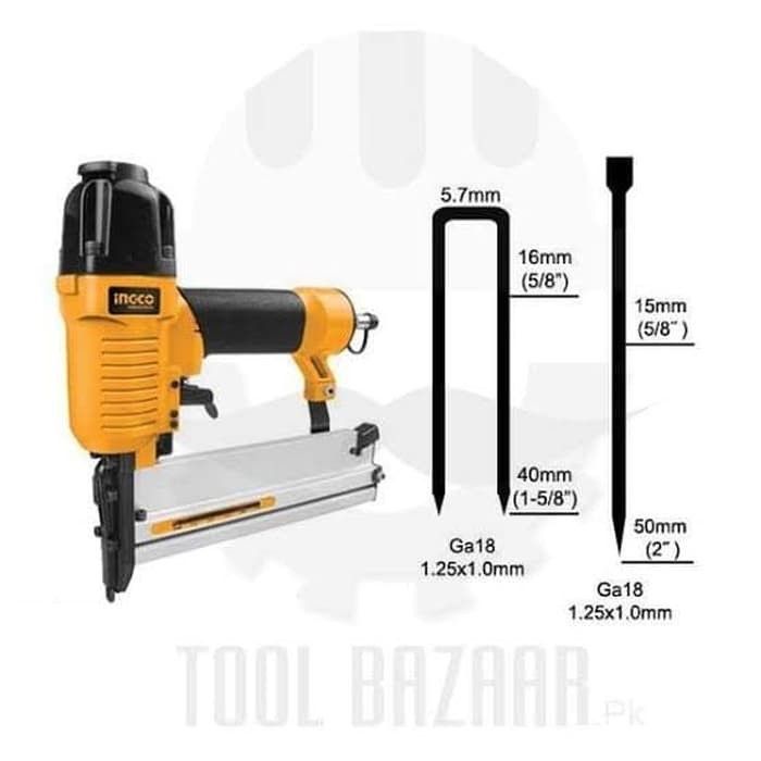 INGCO GA18 ACN50401 2IN1 COMBO BRAD AIR NAILER MESIN ALAT PAKU TEMBAK STAPLES ANGIN 2 IN 1 ACN 50401 DISKON