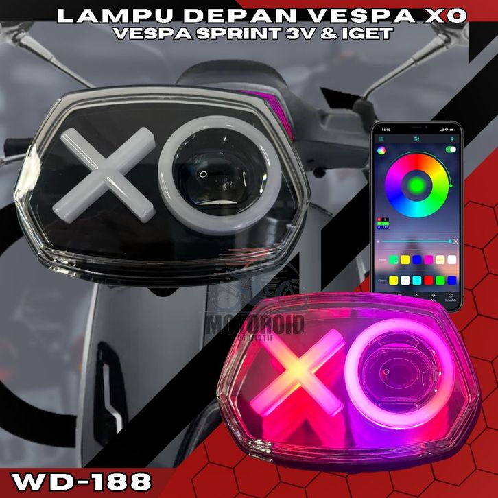 Lampu Depan Headlamp Vespa Sprint 3V V IGET Model XO RGB Connect HP DRL X-CASE Tinggal Pasang PNP