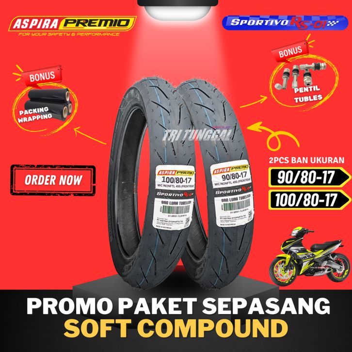 TERLARIS!! [SEPASANG 2BAN] BAN ASPIRA PREMIO SPORTIVO RS01 RING 17 TUBELESS SOFT COMPOUND ( 90/80-17 + 100/80-17 ) / BA