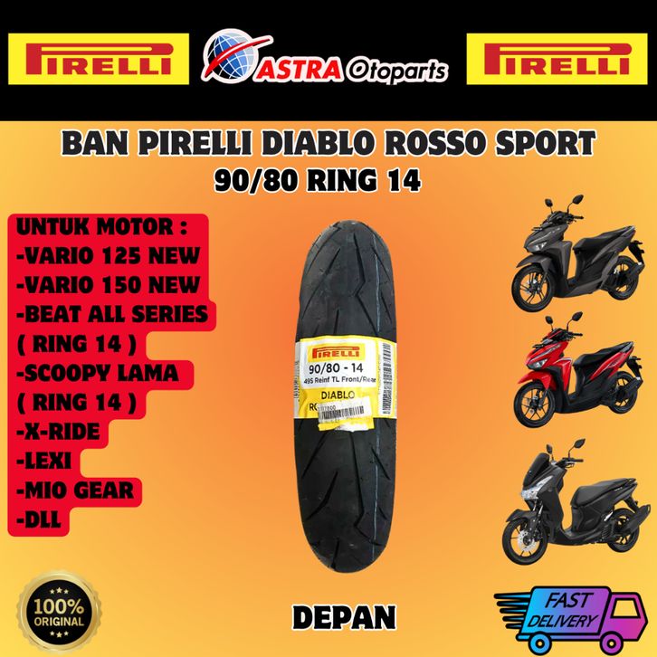 TERLARIS!! Ban Pirelli 90/80 14 & 100/80 14 Diablo Rosso Sport Untuk Motor Vario 150 , Vario 125 , Beat , Scoopy Lama ,