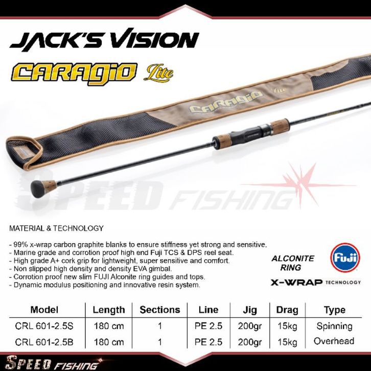 Joran Jack's Vision Caragio Lite Pe 2.5 180cm Joran Jigging Spinning Overhead