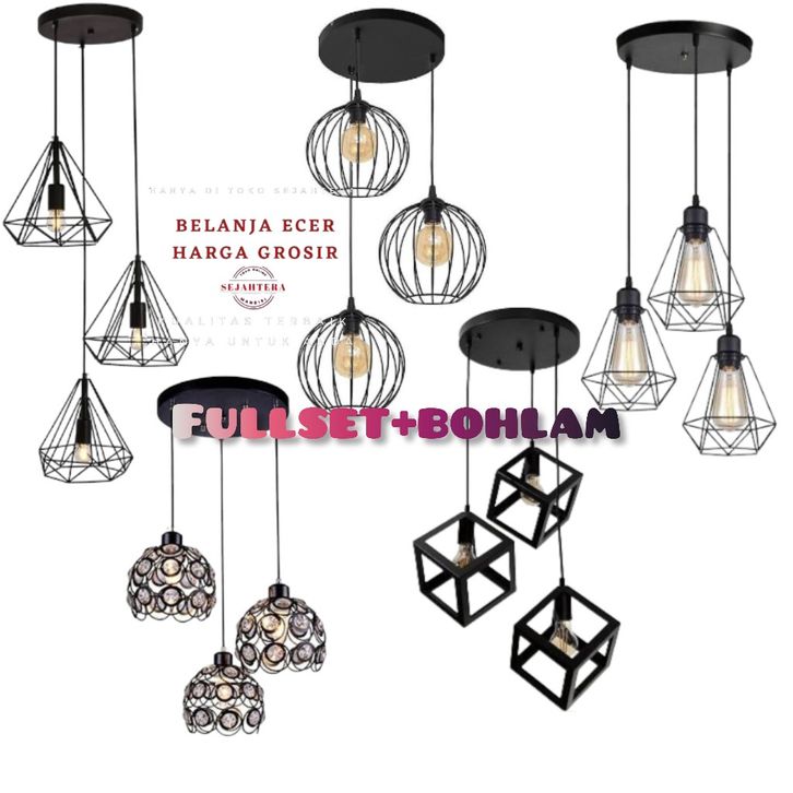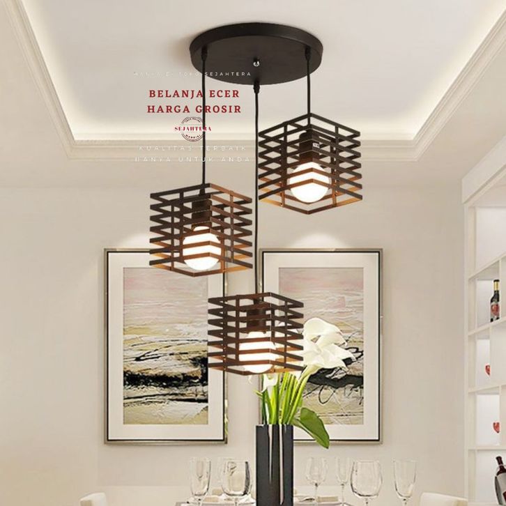 Lampu hias gantung tipe cabang 3 bulat pulset kabel-vitink-dudukan keflafon-bohlam