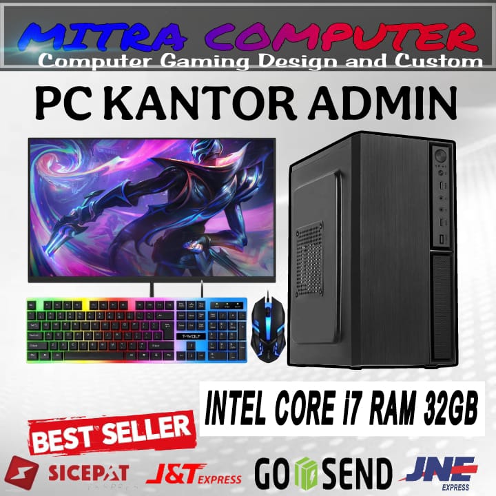 PC Rakitan Fullset Intel Core i7 3770 RAM 16GB SSD 128GB HDD 500GB Monitor 24 Inci Wi Fi